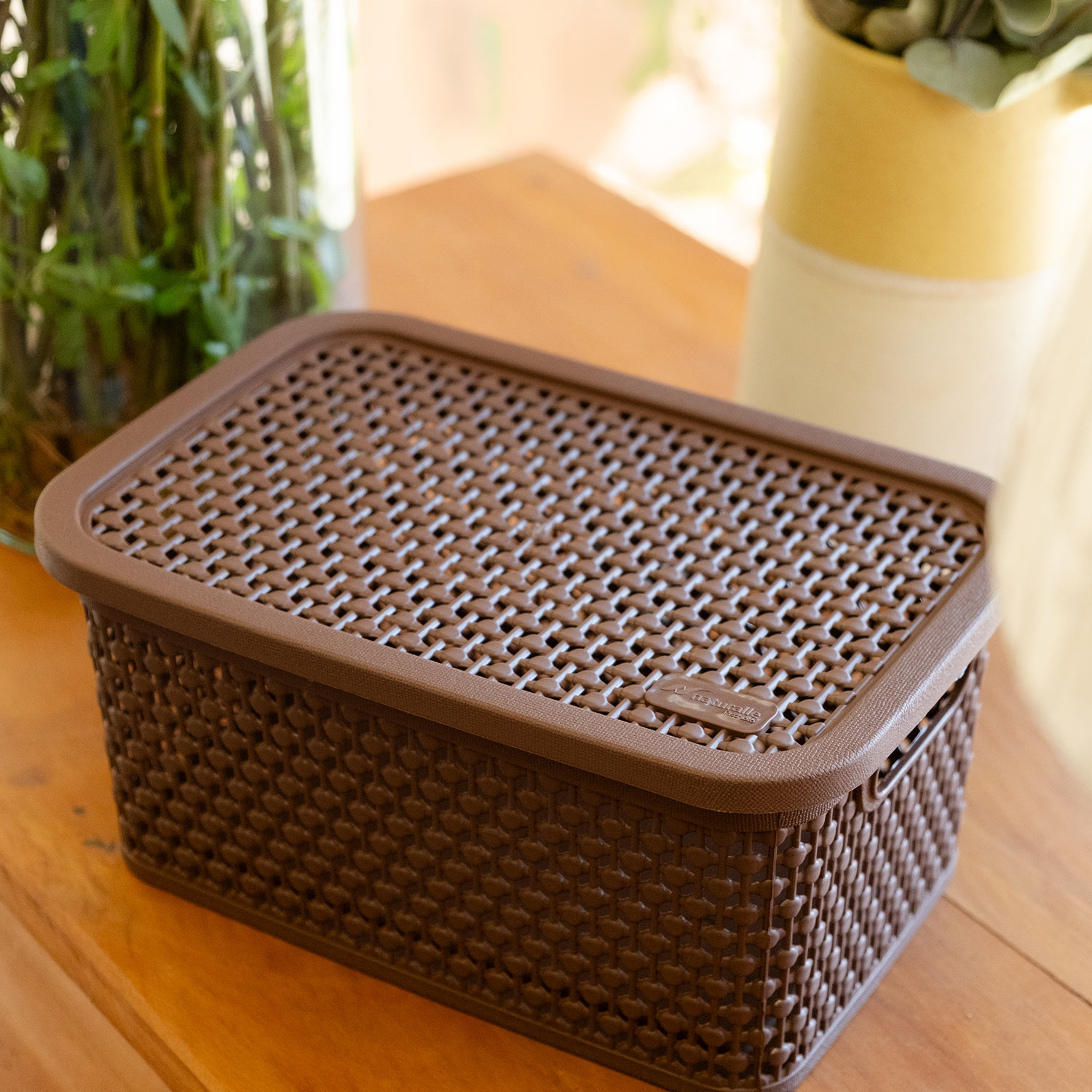 Organização com charme, resistência e sofisticação. A Caixa Naturalle Rattan 4,0 L une design elegante e praticidade para o dia a dia. Com textura rattan e acabamento aveludado, transforma a organização em um detalhe decorativo.