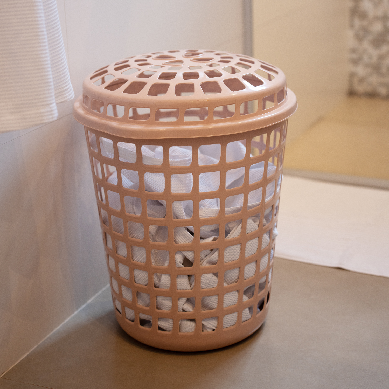 Com capacidade de 60 litros, o Cesto Telado Lavanna na cor Rose é perfeito para armazenar roupas sujas de forma prática e organizada, evitando que se espalhem pela casa.