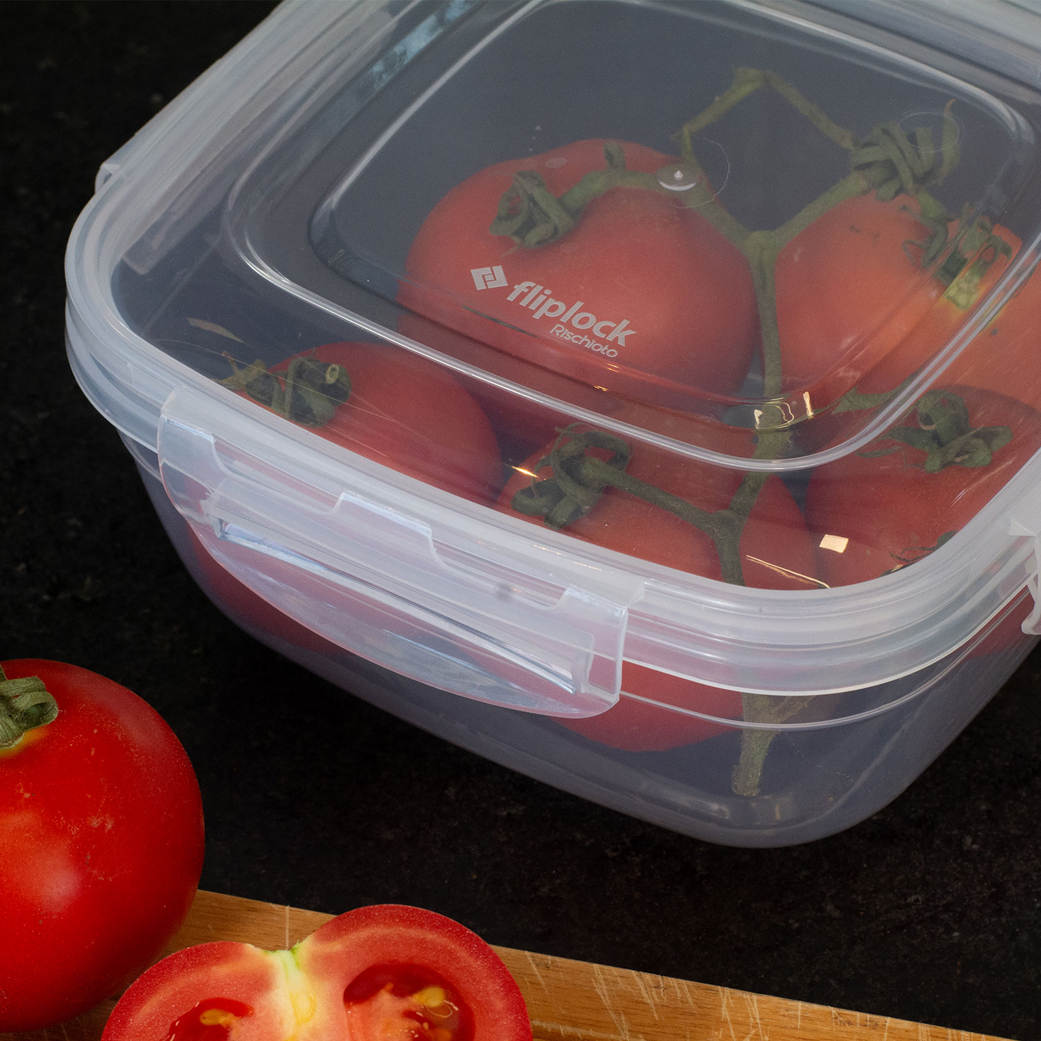Disponível em diversos tamanhos, o Fliplock é perfeito para organizar a despensa, conservar alimentos ou levar refeições com praticidade